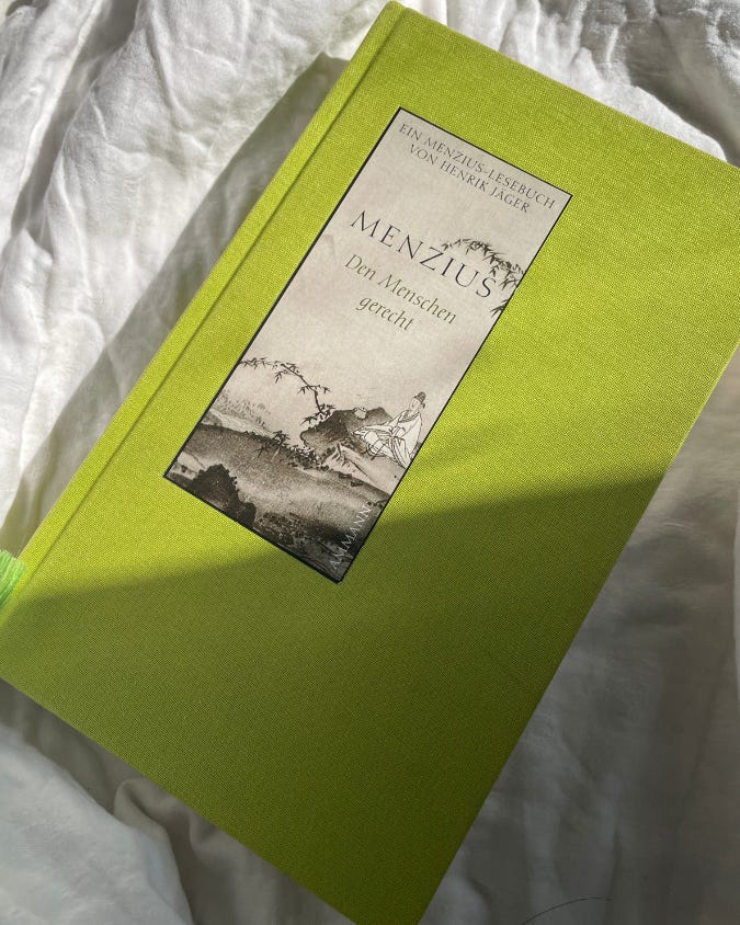 The dialogue with my roots was opened, and Mengzi found me, in a green book given to me by a German philosopher. Mengzi’s teachings echoed through me in Chinese characters and German, a language my father associates with alienation, and that for me, became the key to reclaim my origin, not in words, but in frequency. Mengzi spoke so much about the heart and our return to it. As Mengzi spoke about greed, war, about ideas that were dominant without geographic origin: neither Western nor Eastern, I began to ascertain purpose in my origin. As early as he lived (371-289 BCE), he observed how there was a phenomenon of alienation going on amongst the people, a tendency to be taken by rituals without substance and form without life. He wrote about the heart not as a romantic, but because he was alarmed.
